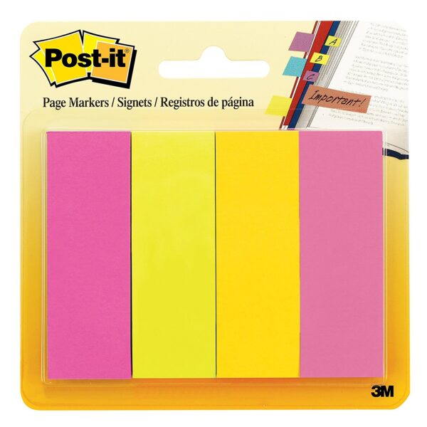 3M Post-it Page 671-4AN Markers, Assorted Colors, 1 in x 3 in, 50 Sheets/Pad, 4 Pads/Pack