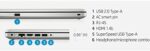 ?Windows 10 Home included?3-cell 41 Whr Battery. 15.78 inch W x 10.15 inch D x 0.78 inch H, 4.86 lbs. 2x SuperSpeed USB Type-A, 1x SuperSpeed USB Type-C, 1x Headphone/microphone combo jack, 1x HDMI. Wireless-AC + Bluetooth, Silver. Bonus 32GB SnowBell USB Card.