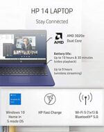 2022 Newest HP 14″ HD Laptop Light-Weight, AMD 3020e(Up to 2.6GHz), 8GB RAM, 256GB SSD + 64GB eMMC, 1 Year Office 365, WiFi, Bluetooth 5, USB Type-A&C, HDMI, Webcam, Win10, w/Ghost Manta Accessories