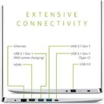 Acer Aspire 5 A515-54-51DJ comes with these high level specs: 8th Generation Intel Core i5-8265U Processor 1.6GHz with Turbo Boost Technology up to 3.9GHz (6MB Smart cache), Windows 10 Home, 15.6 Inches Full HD (1920 x 1080) widescreen LED-backlit IPS Display, Intel UHD Graphics 620, 8GB DDR4 Memory, 256GB PCIe NVMe SSD, True Harmony Technology, Two Built-in Stereo Speakers, Acer Purified.Voice Technology with Two Built-in Microphones, 802.11ac WiFi featuring 2×2 MU-MIMO technology (Dual-Band 2.4GHz and 5GHz), 10/100/1000 Gigabit Ethernet LAN (RJ-45 port), Bluetooth 5.0, Back-lit Keyboard, Acer Fingerprint Reader supporting Windows Hello, HD Webcam (1280 x 720), 1 – USB 3.1 (Type-C) port (Gen 1 up to 5 Gbps), 2 – USB 3.1 Gen 1 Port (one with Power-off Charging), 1 – USB 2.0 Port, 1 – HDMI Port with HDCP support, Lithium-Ion Battery, Up to 9.5-hours Battery Life, 3.97 lbs. | 1.8 kg (system unit only) (NX.HG5AA.001).