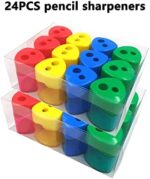 PACKAGE】Cute and functional pencil sharpeners manual, comes with 24 pieces. Assorted transparent colors in red, green, yellow and blue. Great gift for students and teachers, kids and adults to use in classroom, community center.