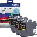 Brother Genuine LC401 3PK Standard Yield 3-Pack Ink Cartridges – Includes 1 Cartridge Each of Cyan, Magenta and Yellow