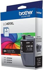 Trust Brother Genuine ink for superior inkjet print quality and performance you can consistently rely on. Brother Genuine LC401XLBK High Yield Black Ink Cartridges deliver consistent, professional print quality and ultra convenience you can count on for up to 500 pages.(1) Brother Genuine ink is intelligently engineered to work seamlessly with your Brother inkjet printer to consistently produce sharp prints that withstand the test of time. A full range of single and multi-pack color and black ink cartridges is available that delivers high quality prints, reliable page yields and exceptional value. Brother Genuine LC401XLBK ink cartridges are for use with Brother affordable color inkjet all-in-one printers MFC-J1010DW, MFCJ1012DW and MFC-J1170DW. Brother offers an environmentally responsible way for customers to dispose of Brother Genuine cartridges at end of life. Visit manufacturer’s website for information. Disclaimer: (1) Approximate page yields in accordance with ISO/IEC 24711. For additional page yield info, see manufacturer’s website.