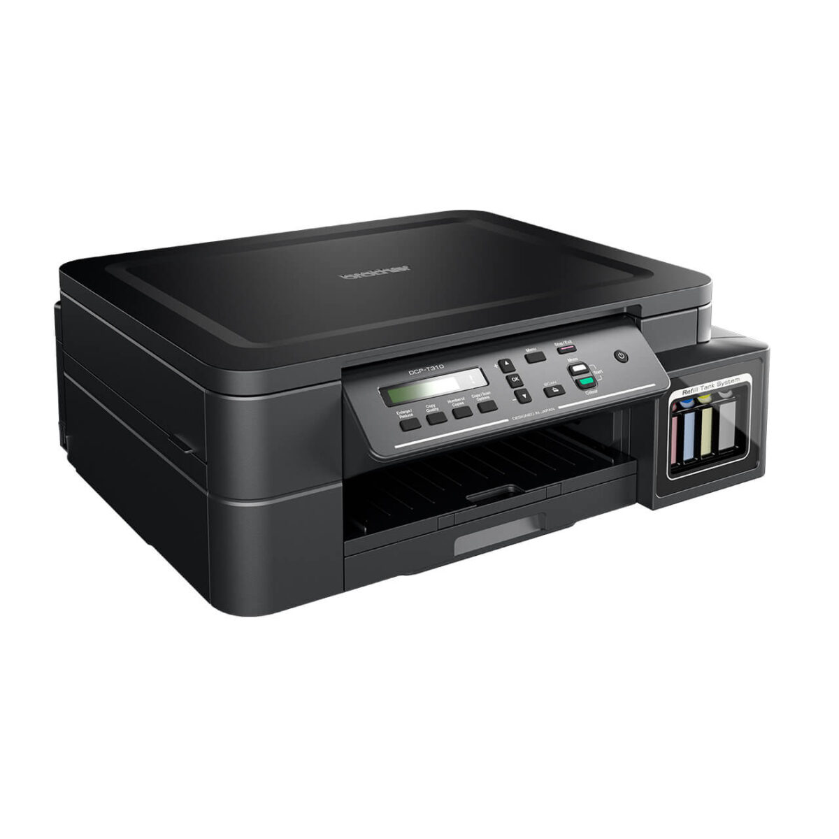 No more worries about ink cost with embedded front-access refill ink tank printer Brother DCP-T310, which comes with big capacity of 6,500 page-yield suitable for busy households and small offices. Compact design fits into small spaces just right. Plus, it is equipped with flexible paper handling options like 150 sheet default paper tray & 1-sheet manual feed slot.