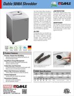 The Dahle 50464 Office Shredder is oil-free and supports the document destruction needs of busy offices with 3-5 users. It features oil-free, hassle-free operation, SmartPower energy management, and Trident Grip jam protection to eliminate frustration. This P-4 shredder produces a 1/8″ x 1 9/16″ particle size and holds up to 30 gallons of shredded waste. It’s German engineered and guaranteed to provide many years of trouble-free operation.