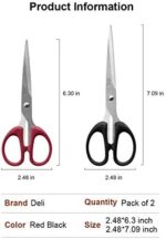 Deli 2 Pack Multi-Purpose Cutting Scissors, Ergonomic Anti-Rust Scissor Blade, Durable Craft Scissors Set, Comfort Grip for School Home and Office Use