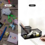 Deli Mesh Desk Organizer Office Supplies Caddy with Pencil Holder and Storage Baskets for Desktop Accessories, 3 Compartments, Black