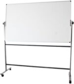 This rolling whiteboard features four casters, two with locking Brakes, for easy maneuverability and stability.