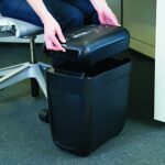 The Fellowes PowerShred 60Cs Cross-Cut Shredder can shred up to 10 sheets of paper per pass into 302 (5/32” x 2” Security Level P-4) cross-cut particles. This machine also safely shreds CDs/DVDs, credit cards, staples, paper clips and junk mail. To protect more than your identity, the patented SafeSense Technology is designed with an electronic safety sensor that surrounds the paper entry and automatically disables the shredder when hands touch the paper opening. With the ability to shred for up to 6 minutes before a cool down period is needed, the 60Cs is ideal for personal deskside use and includes a 6-gallon lift-off head. Backed by a worry-free 1-year product and service warranty plus a 5-year cutter warranty. 16.06″ H x 9.19″ W x 14.63″ D
