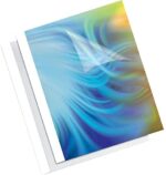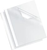 Presentation covers for thermal binding systems. Transparent front cover highlights title page. Elegant back cover in glossy white or linen-textured black. Compatible with most thermal binding systems.