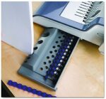 The compact, high performance Fellowes Quasar E Comb Binding Machine features effortless electric punching for the ultimate in convenience. The Quasar E punches up to 20 sheets at the touch of a button and binds up to 500 sheets with a 2 Inches comb in a continuous manner. Vertical document loading ensures accurate punch alignment. Features built-in comb storage tray with document measurement device for added convenience and quick set-up. Adjustable edge guide centers documents with ease. Includes binding starter pack (contents: 10 pack assorted kit).