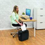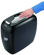 The Powershred DS-12Cs Cross-Cut Shredder provides active shredder safety technology for the small office. Safe Sense Technology stops shredding when hands touch the paper opening. The DS-12Cs shreds 12 sheets per pass into 5/32″ x 2″ cross-cut particles (Security Level P-3) and also safely shreds staples, paper clips, plastic credit cards and junk mail. It has a 4-gallon pull-out bin. Designed for individual use, the DS-12Cs shreds for up to 5 minutes before a 20 minute cool down period is needed. Includes 1-year product warranty plus 5-year cutter warranty.