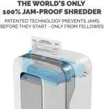 100% jam proof paper shredder with IntelliBar patented responsive technology shreds up to 12 sheets of paper per pass into 5/32” x ½” micro-cut particles for superior security
