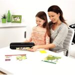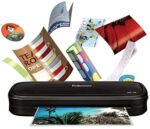 Laminator for light use in home or home office. Laminates documents and photos up to 9″ wide.