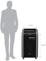 100% Jam Proof System eliminates paper jams and powers through tough jobs. SilentShred offers ultra-quiet performance for shared workspaces. Patented SafeSense Technology stops shredding when hands touch the paper opening. Energy Savings System reduces energy consumption by up to 70% compared to conventional commercial shredders during normal usage. Continuous duty motor for non-stop shredding. 2-year product and service warranty plus lifetime on cutters. 20 sheets per pass. 7/32″ Strip-Cut particles (Security Level 2). 16-gallon bin. 31.75″H x 17.75″W x 17.13″D. For 3-5 users.