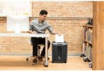 Shreds 12 sheets of paper per pass into 397 (5/32” x 1-1/2” Security Level P-4) cross-cut particles; shreds staples, credit cards, paper clips, CDs/DVDs