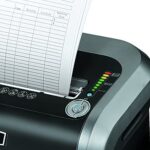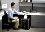 SafeSense technology stops shredder when hands touch the paper opening..Shreds 16 sheets per pass into 5/32″ x 1-1/2″ cross-cut particles (security level P-4).