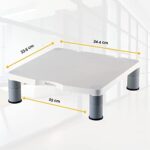 Standard Monitor Riser with innovative stacking columns raises your monitor to a comfortable viewing height. Features 3 different height adjustments from 2 Inch to 4 Inch. Space-saving design constructed of sturdy, high-impact plastic supports up to 60 lbs. Non-skid rubber feet ensure stability on any surface.