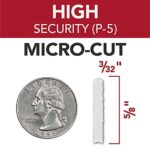 MICRO-CUT – The micro-cut style shred provides P-5 Level Security, which creates 3/32″ x 5/8″ size shreds. Perfect for shredding confidential or sensitive information in the home or small office.