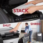 AUTO FEED – Just stack, shut and shred! Place up to 300 sheets of paper into the auto feed chamber. Shut the door and walk away. Manual feed option lets you feed up to 8 sheets at once.