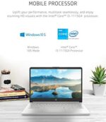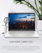 Stay productive and entertained from anywhere with the HP 14 Laptop. Take this PC on-the-go with its thin and light design, and enjoy a maximized viewing area thanks to the slim bezel (1). Prepare for 4K content with Intel® UHD Graphics powering your favorite shows and games (3). You can count on the reliable performance of the 11th Generation Intel® Core™ i3-1115G4 processor, even on your busiest days or long streaming sessions (4). Multi-task faster with 4 GB of RAM and enable speedy boot-ups and an overall snappier experience with 128 GB of Solid-State Drive storage (5). Long battery life and HP Fast Charge technology combine to give your laptop computer all the power you need for all-day work or play (6) (7). Windows 10 in S mode keeps your computing experience secure (8), while a 1-year limited hardware warranty gives you peace of mind. Your internet connectivity is strong and dependable with a Wi-Fi 5 (1×1) and Bluetooth® 4.2 combo (9) (10). Working or learning from home is made easy with a 720p HD camera, integrated dual-array digital microphones (11), and advanced noise reduction software. Plus, your HP laptop is MU-MIMO supported, so you’ll enjoy smooth internet speeds even while sharing bandwidth with multiple devices in the same home. Step up your productivity on a backlit keyboard with an integrated precision touchpad. Be a good steward of the environment with a laptop that is ENERGY STAR® certified (12), EPEAT® Silver registered (13), and built with a low halogen display (14). (1) Percent of active plus inactive viewing area to active viewing area plus border. Measure with the lid vertical to the desk. (2) Full High Definition (FHD) content is required to view FHD images. (3) Wireless access point and internet service required and sold separately. Availability of public wireless access points limited. Graphics output may be limited based on the maximum resolution of the display. Shared video memory (UMA) uses part of the total system memory for video performance. System memory dedicated to video performance is not available for other use by other programs. (4) Multi-core is designed to improve performance of certain software products. Not all customers or software applications will necessarily benefit from the use of this technology. Performance and clock frequency will vary depending on the application workload and your hardware and software configurations. Intel’s numbering, branding, and/or naming is not a measurement of higher performance. Intel, Pentium, Intel Core, Celeron, Iris Xe, Intel logo, and the Intel Inside logo are trademarks of Intel Corporation in the U.S. and other countries. (5) Actual formatted capacity is less. A portion of internal storage is reserved for preloaded content. (6) Battery life tested by HP using continuous FHD video playback, 1080p (1920×1080) resolution, 150 nits brightness, system audio level at 17%, player audio level at 100%, played full-screen from local storage, headphone attached, wireless on but not connected. Actual battery life will vary depending on configuration and maximum capacity will naturally decrease with time and usage. (7) Recharges your battery up to 50% within 45 minutes when the system is off (using “shutdown” command). Recommended for use with the HP adapter provided with the notebook, not recommended with a smaller capacity battery charger. After charging has reached 50% capacity, charging speed will return to normal speed. Charging time may vary +/-10% due to System tolerance. (8) Not all features are available in all editions or versions of Windows. Systems may require upgraded and/or separately purchased hardware, drivers, software, or BIOS update to take full advantage of Windows functionality. Windows 10 is automatically updated, which is always enabled. ISP fees may apply and additional requirements may apply over time for updates. See microsoft.com. Windows 10 Home (S mode) works exclusively with apps from the Microsoft Store within Windows. Certain default settings, features, and apps cannot be changed. Some accessories and apps compatible with Windows 10 may not work (including some antivirus, PDF Writers, driver utilities, and accessibility apps) and performance may vary, even if you switch to Windows 10 Home configuration (fee may apply). You can’t switch back to Windows 10 Home (S mode). Learn more at Windows.com/Windows10SFAQ. (9) Wireless access point and internet service required and sold separately. Availability of public wireless access points limited. Wi-Fi 5 (802.11ac) is backward compatible with prior Wi-Fi 5 specs. (10) Bluetooth® is a trademark owned by its proprietor and used by Hewlett-Packard Company under license. (11) Features may require software or other 3rd party applications to provide the described functionality. Internet service required and not included. (12) ENERGY STAR and the ENERGY STAR mark are registered trademarks owned by the U.S. Environmental Protection Agency. (13) Based on U.S. EPEAT® registration according to IEEE 1680.1-2018 EPEAT®. EPEAT® status varies by country. Visit www.epeat.net for more information. (14) External power supplies, power cords, cables, and peripherals are not Low Halogen. Service parts obtained after purchase may not be Low Halogen.