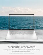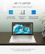 Thoughtfully crafted, the HP 17 Laptop blends sustainability with performance and comfort. Computing has never been more satisfying or comfortable with the lift-hinge design and enlarged click pad. It’s not just the keyboard that’s optimized for your convenience but the display too; the anti-glare screen lets you enjoy your favorite movies and games even while outside on a sunny day (1). Enjoy reliable performance and incredible graphics thanks to the perfect combination of the 11th Generation Intel® Core™ i5-1135G7 processor and Intel® Iris® Xe Graphics (2) (3). Get all the storage you need and the high bandwidth you crave courtesy of your laptop computer’s 256 GB of Solid-State Drive storage and 8 GB of RAM (4) (5). Beyond the hardware, this HP laptop has many more features to take your work and play to new levels of comfort. Don’t stress about battery life again with up to 8 hours to play with (6), plus the added benefit of HP Fast Charge technology for quicker recharges when you need it (7). Get right to work with the Windows 10 operating system you know and love and enjoy a greater peace of mind thanks to the HP 1-year limited hardware warranty (8). Your wireless connectivity is smooth with up to 3x faster file transfer speeds than Wi-Fi 5, thanks to the Wi-Fi 6 (2×2) and Bluetooth® 5.0 combo (9) (10) (11). Keep up the productivity, even while you work from anywhere. This Windows laptop has everything you need for expert video calls from the HP TrueVision HD camera to the custom-tuned dual speaker setup (12). Do your part toward a sustainable future with an environmentally responsible laptop. Eco-conscious materials like ocean-bound plastic are used in the construction of the cover, bezel, and speaker enclosure (13). The outer boxes and fiber cushions used in the packaging are 100% sustainably sourced and recyclable (14). The HP 17.3 laptop is also ENERGY STAR® certified and EPEAT® Silver registered (15) (16). Introducing Windows 11 (17) Windows 11 is coming! A new Windows experience, bringing you closer to the people and things you love. Get a sneak peek now! (1) High-definition Plus (HD+) content is required to view high definition plus images. (2) Multi-core is designed to improve the performance of certain software products. Not all customers or software applications will necessarily benefit from the use of this technology. Performance and clock frequency will vary depending on the application workload and your hardware and software configurations. Intel’s numbering, branding, and/or naming is not a measurement of higher performance. Intel, Pentium, Intel Core, Celeron, Iris Xe, Intel logo, and the Intel Inside logo are trademarks of Intel Corporation in the U.S. and other countries. (3) Shared video memory (UMA) uses part of the total system memory for video performance. System memory dedicated to video performance is not available for other use by other programs. (4) Actual formatted capacity is less. A portion of internal storage is reserved for preloaded content. (5) Based on HP internal testing using CrystalDiskMark benchmarking software. Performance is sequentially faster (read-only) compared to traditional 5,400 rpm HDD. (6) Windows 10 MobileMark 18 battery life will vary depending on various factors including product model, configuration, loaded applications, features, use, wireless functionality, and power management settings. The maximum capacity of the battery will naturally decrease with time and usage. See bapco for additional details. (7) Recharges your battery up to 50% within 45 minutes when the system is off (using the “shutdown” command). Recommended for use with the HP adapter provided with the notebook, not recommended with a smaller capacity battery charger. After charging has reached 50% capacity, charging speed will return to normal speed. Charging time may vary +/-10% due to System tolerance. (8) Not all features are available in all editions or versions of Windows. Systems may require upgraded and/or separately purchased hardware, drivers, software, or BIOS update to take full advantage of Windows functionality. Windows 10 is automatically updated, which is always enabled. ISP fees may apply and additional requirements may apply over time for updates. See microsoft (9) Based on Wi-Fi 5 80MHz and Wi-Fi 6 160MHz minimum requirements when transferring files between two devices connected to the same router. Requires a wireless router, sold separately, that supports 802.11ax (Wi-Fi 6). Only available in countries where 802.11ax is supported. (10) Wireless access point and internet service required and sold separately. Availability of public wireless access points limited. Requires a wireless router, sold separately, that supports 80MHz channels. Wi-Fi 6 (802.11ax) is backwards compatible with prior 802.11 specs. The specifications for Wi-Fi 6 are draft and are not final. If the final specifications differ from the draft specifications, it may affect the ability of the notebook to communicate with other Wi-Fi 6 devices. Only available in countries where 802.11ax is supported. (11) Bluetooth® is a trademark owned by its proprietor and used by Hewlett-Packard Company under license. (12) Features may require software or other 3rd party applications to provide the described functionality. Internet service required and not included. (13) Percentage of ocean-bound plastic contained in each component varies by product. (14) 100% outer box/corrugated cushion packaging made from sustainably sourced certified and recycled fibers. Fiber cushions are made from 100% recycled wood fiber and organic material. Excludes plastic bags and plastic foam sheeting. (15) ENERGY STAR and the ENERGY STAR mark are registered trademarks owned by the U.S. Environmental Protection Agency. (16) Based on U.S. EPEAT® registration according to IEEE 1680.1-2018 EPEAT®. EPEAT® status varies by country. (17) Upgrade rollout plan is being finalized and is scheduled to be
