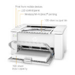 - Highlights: This HP LaserJet Pro wireless laser printer features fast mono laser printing, wireless and mobile printing, first page out in as little as 7.3-seconds, USB and Wireless connectivity, 150-page input tray, 100-page output tray, and energy saving features like HP Auto-On/Auto-Off Technology.