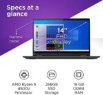 Powered by an AMD Ryzen 5 5500U mobile processor with Radeon graphics, this portable notebook computer has 16GB DDR4 RAM and 256GB NVMe SSD Storage