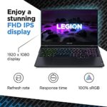 The 15.6″ FHD (1920 x 1080) IPS display on the Legion 5 gaming laptop delivers speed and color clarity for full-fidelity gaming