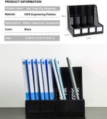 Leven Sturdy Magazine File Holder Desk Organizer File Folder for Office Organization and Storage with 4 Vertical Compartments, File-Storage-Organizer-Magazine-Holder (Black)