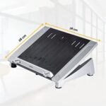 With the Office Suites Laptop Riser Plus from Fellowes, use the height adjustment feature to raise your laptop to eye-level to help prevent neck strain – and raise your level of productivity and comfort! Unit also features an in-line document holder for a more comfortable viewpoint and cooling vents to help dissipate heat from the laptop. For added convenience, the stabilizing front edge prevents your laptop from sliding off the stand. 360° rotation allows easy viewing and cord access. Supports 17” laptop or a maximum weight of 10 lbs.