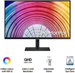 SAMSUNG S60A Series 32-Inch WQHD (2560×1440) Computer Monitor, 75Hz, HDMI, Display Port, HDR10 (1 Billion Colors), Height Adjustable Stand, TUV-Certified Intelligent Eye Care (LS32A600NWNXGO)