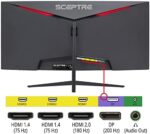 Sceptre 30-inch Curved Gaming Monitor 21:9 2560×1080 Ultra Wide Ultra Slim HDMI DisplayPort up to 200Hz Build-in Speakers, Metal Black (C305B-200UN1)