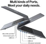 The 15.6 inch laptop is pre-installed with Windows 11 and equipped with a powerful Intel Celeron N4500 processor with a turbo frequency of up to 2.8 GHz. With extensive interfaces such as 2xUSB 3.0, HDMI, USB Type-C, Micro SD card slot, etc. to meet your connection needs.