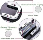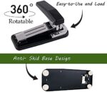 ✅【FLEXIBLE INNOVATION】: Our innovative desktop stapler features 360 degrees rotation which offers multiple unique binding angles, as well as a convenient 90 degree self-locking position. Our rotary stapler is slotted with a stainless steel saddle stitch that provides 3 different stapling positions and gives you dual binding choices – Permanent and Temporary. Temporary stapling is where staples can be removed easily due to its clinch style. Perfect for DIY projects like inserts or booklets!
