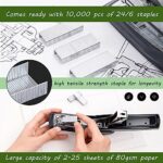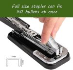 ✅【EASY-TO-USE】: Featuring 70mm depth of throat, you will have no problem with those midseam bindings. There are silicone pads at the bottom serving as a non-slip base which will hold your stapler firmly in place and protect your desktop from scratches. Our full size stapler can fit 50 bullets at once. Your package will come ready with 10,000pcs of 24/6 staples, so you can immediately use the stapler without the need for separate purchases. How easy is that?