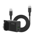 WiWU 30W PD Fast Wall Charger for iPhone Dual Ports USB A Type C with Cable UK Plug Mobile Phone Charging