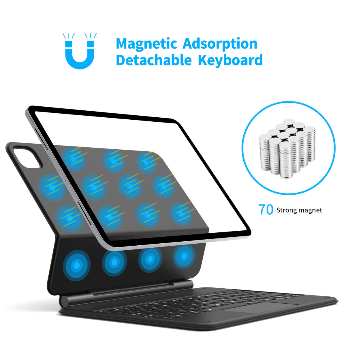 WiWU Bluetooth Wireless Keyboard Upgraded Touch Pad Magnetic Adsorption Detachable Adjustable Keyboard for 10.9 & 11inch iPad Pro 2021