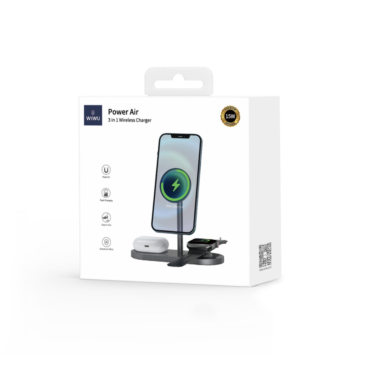 WiWU Power Air X23 3 in 1 Power Air Wireless Charger Station Mobile Phone Stand Portable Desktop 15W Power Delivery Station